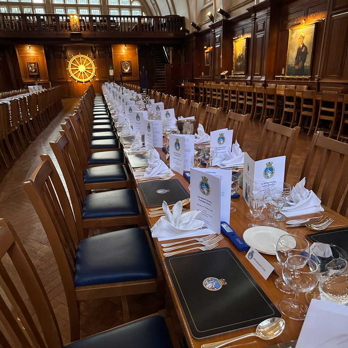 In recent years this Dinner has been held in some spectacular locations including Drapers’ Hall in the City of London, the Quarterdeck of Britannia Royal Naval College Dartmouth, the Wardroom of HMS Nelson Portsmouth and the Royal Marines Stonehouse Barracks Plymouth.