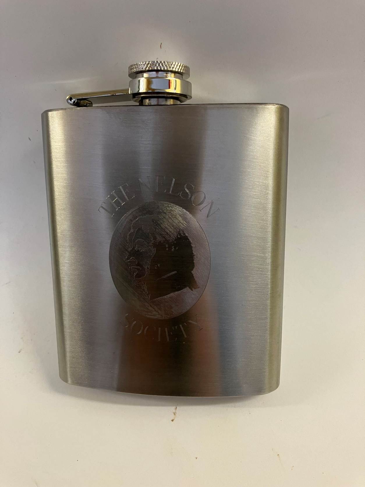 Hip Flask with The Nelson Society logo